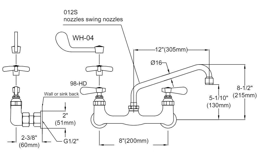 For use in commercial kitchens 1/2 Inch male threads (IPS) Shut off release handle Supplied with clamping ring Guaranteed compatible fit only with T&S Pre-Rinse Sprays